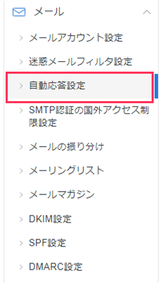 サーバーパネルへログインし、現在の設定対象ドメインを確認し、「自動応答設定」を選択します。