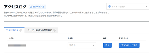 過去のアクセスログデータが必要な場合は、「ユーザー領域への保存設定」より保存期間の設定を行うことで、ログファイルがサーバー(ユーザーディレクトリ)上に生成されます。